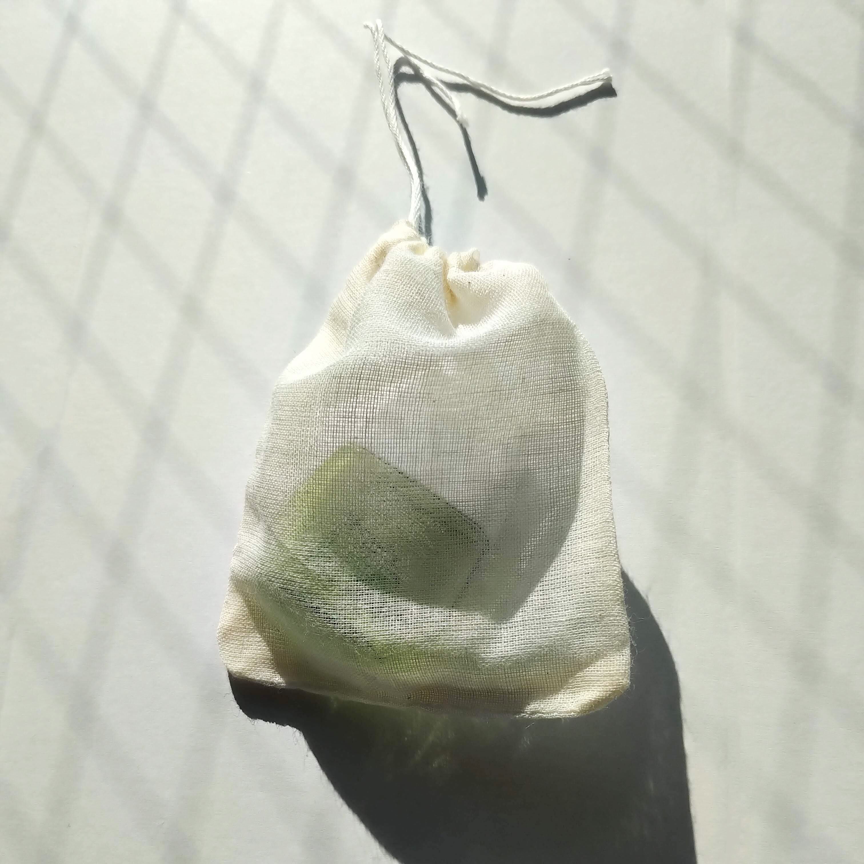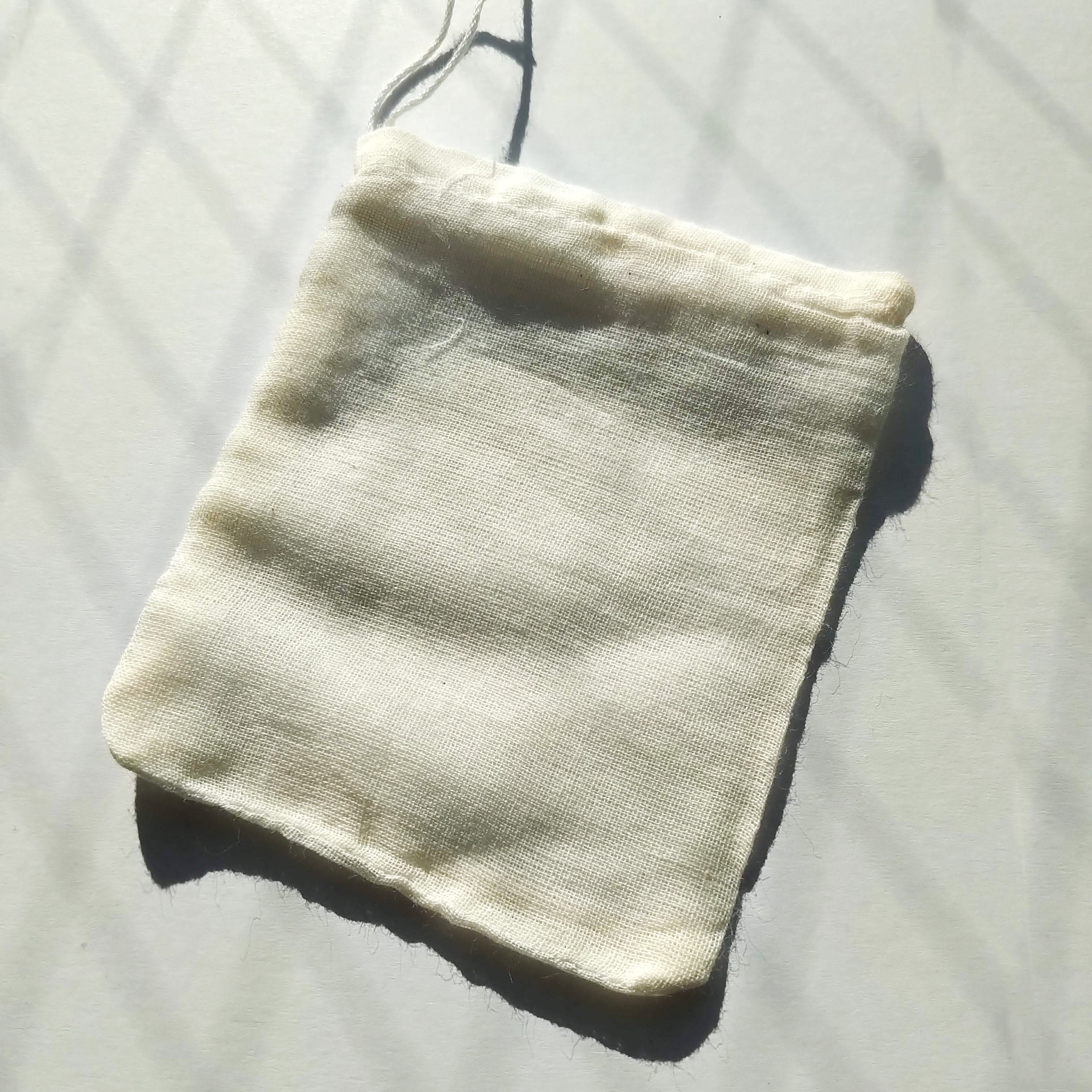 小さなものの持ち歩きや保管に便利な、中身が少し透けて見える巾着タイプのコットン100%袋です。